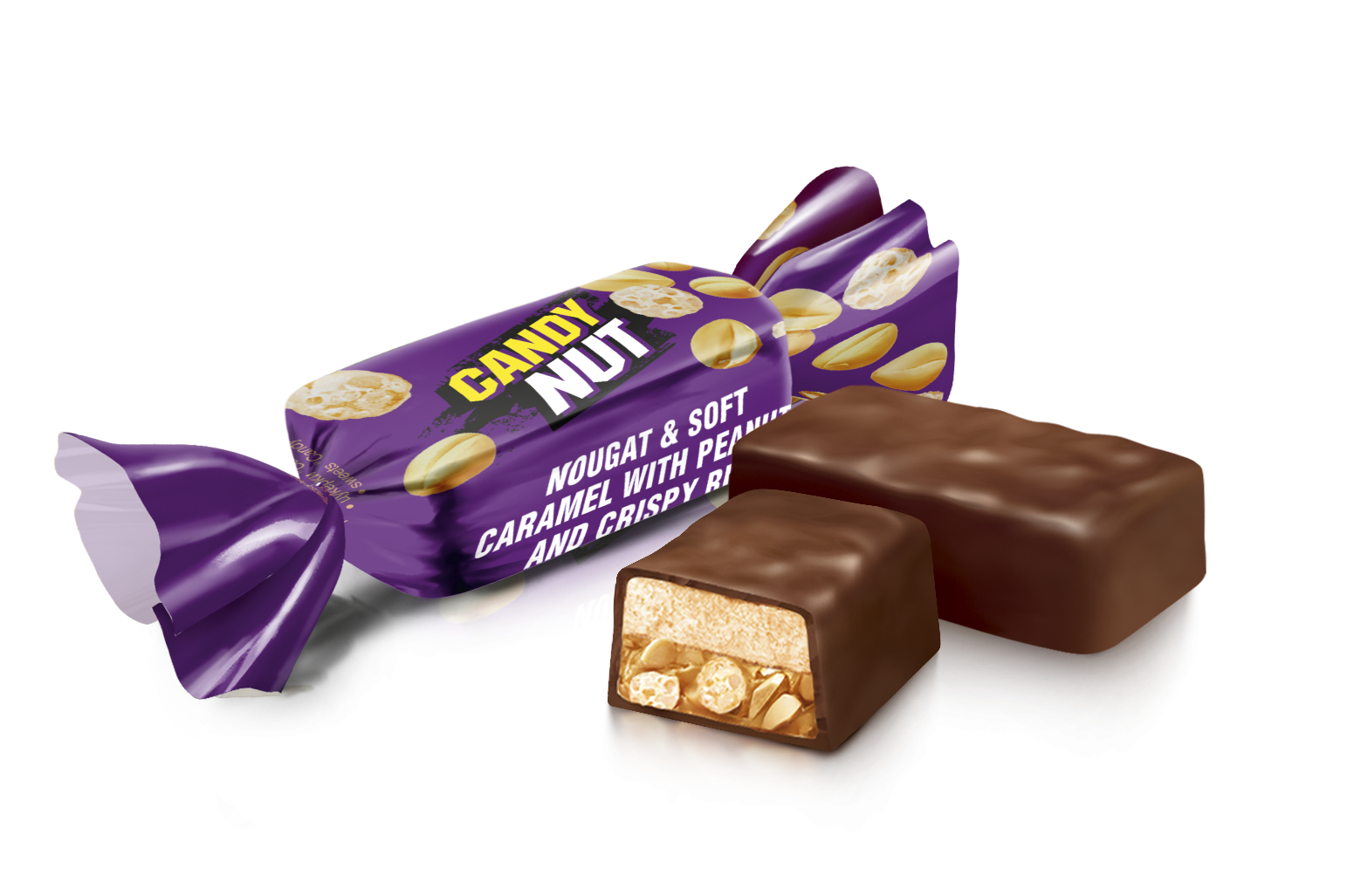 Bomboane Roshen Candy Nut nuga și caramel moale cu arahide și orez crocant 1kg